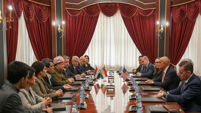 بارەگانی بارزانی بڵاوی کردووەتەوە، ئەمڕۆ ١٧_١_٢٠٢٥ مەسعود بارزانی میوانداریی باڵیۆز تۆماس باراك نێردەی تایبەتی سەرۆكی ئەمەریكا بۆ سوریا و مەزڵوم عەبدی، فەرماندەی گشتیی هێزەكانی سوریای دیموكرات و محەمەد ئیسماعیل سەرۆكی ئەنەكەسەی كردووە.