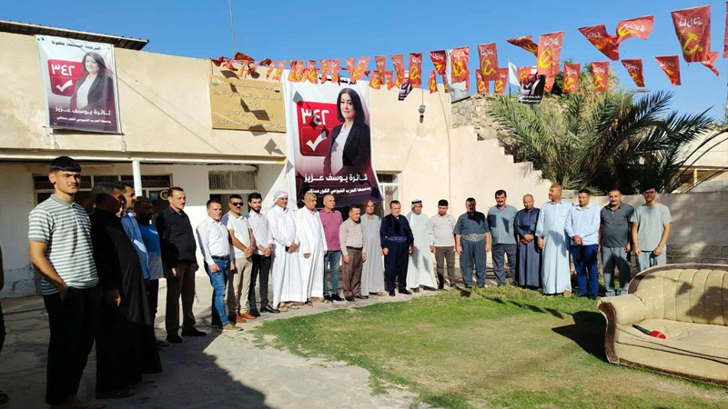 سەبارەت بەبەشداری کردنی حزبی شیوعی کوردستان لەهەڵبژاردنەکە،هاوڕێ ئەبو کاروان ووتی، ئێمە پاڵپشتی لە کاندیدی ژمارە ۳٤۲ لە کۆتای پێکهاتەکان ، ثائیرە یوسف عزیز دەکەین. ئەم کاندیدە هاوڕێیەکی تێکۆشەری شیوعیەو خۆی خانەوادەکەی خاوەنی چەندین قوربانین،