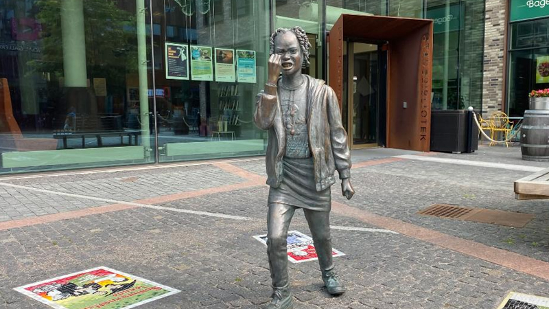 هونهمهند شوان كهمال دهڵێت"ئولا یاكۆبسۆن هونهرمهندێك و ئهكتهرێكی شانۆ و سینهمای سویدی نهمساویه،له شاری یۆتۆبۆری ژیاوه لهنێوا سااڵنی پهنجاكان و شهستهكانی سهدهی ڕابردو،لهم ساڵانهی، دوایی شارهوانی شارهكه بڕیاری داوه شوێێك بكرێت بهناویهوه به تهحدیدی ئهكهوێته گهرهكی مۆنداڵ بهردهم كتێبخانهی گشتی،له ئێستایا پهیكهرهكه لهو دانراوه".